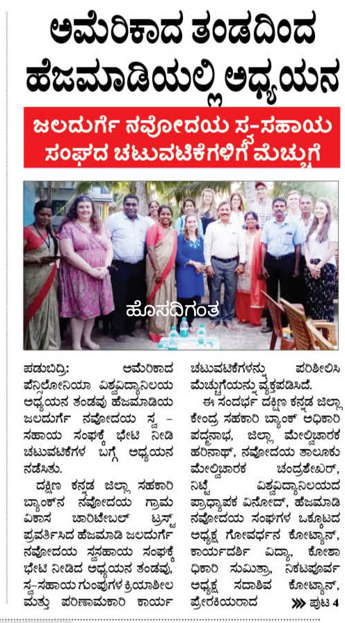The delegates from Pennsylvania university headed by Femina Handy , professor Pennsylvania university visited Navodaya SHG groups and appreciated their creative and effective activity of the group